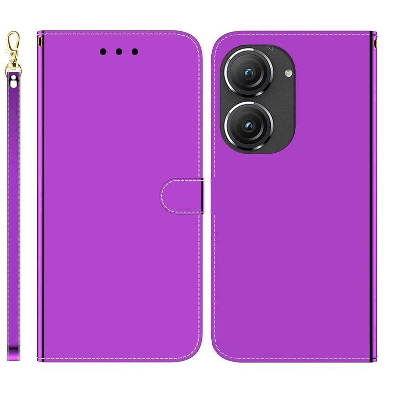 Για Asus Zenfone 9 Imitated Mirror Surface Flip δέρμα τηλέφωνο υπόθεση (μωβ)