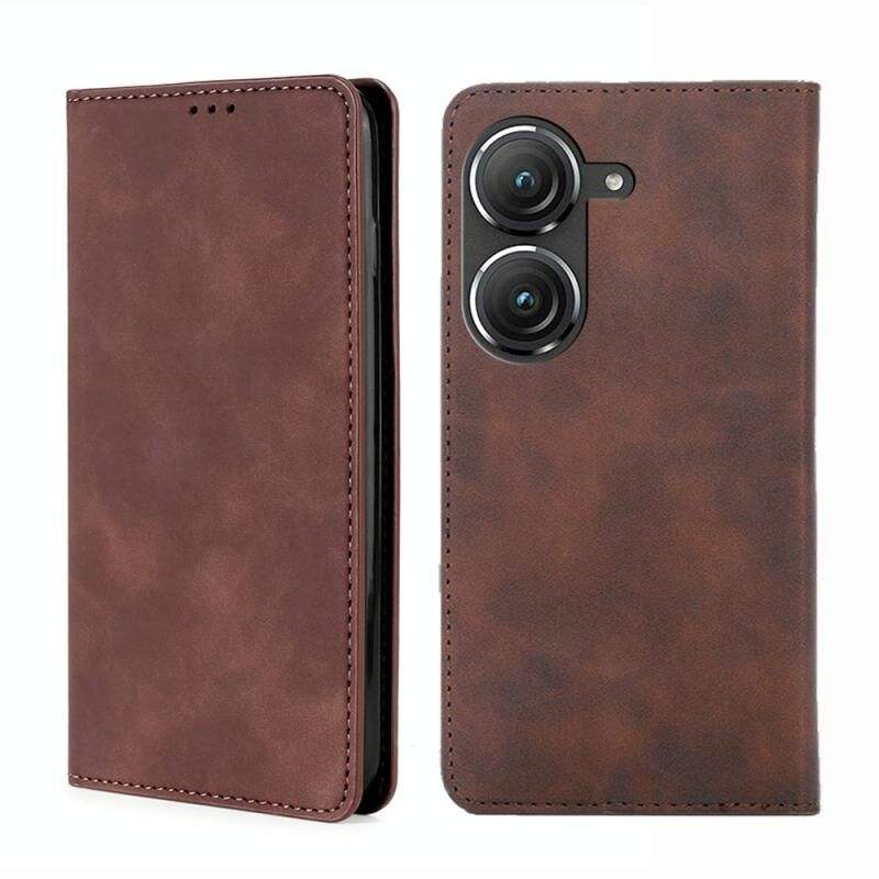 Για Asus Zenfone 9 Skin Feel μαγνητική οριζόντια Flip δερμάτινη θήκη τηλεφώνου (σκούρο καφέ)