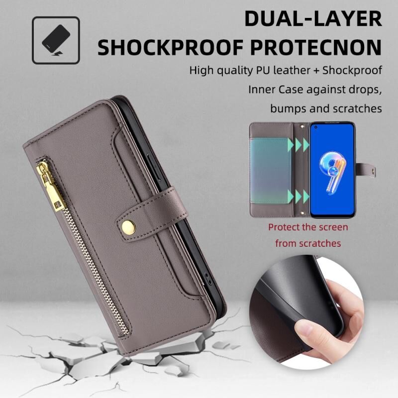 Θήκη τηλεφώνου δερμάτινη με φερμουάρ και σχέδιο αρνιού για ASUS Zenfone 9 / Zenfone 9Z (Μαύρο)