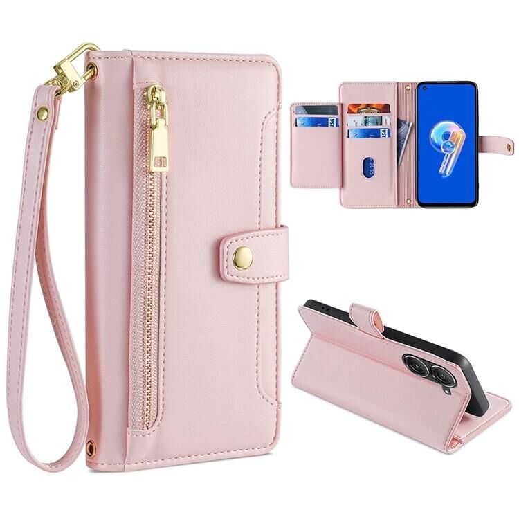 Θήκη τηλεφώνου δερμάτινη με φερμουάρ και σχέδιο αρνιού για ASUS Zenfone 9 / Zenfone 9Z (Μαύρο)