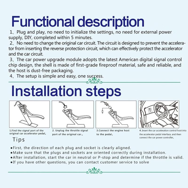 1. Ο ηλεκτρονικός ελεγκτής γκαζιού είναι ένας ελεγκτής απόκρισης γκαζιού. Εξαλείφει τις καθυστερήσεις απόκρισης στο ηλεκτρονικό πεντάλ γκαζιού σας. Αποτελεσματικά, επιτρέπει στον κινητήρα σας να ανταποκρίνεται γρηγορότερα. Ως αποτέλεσμα, το αυτοκίνητό σας μπορεί να επιταχύνει γρηγορότερα.