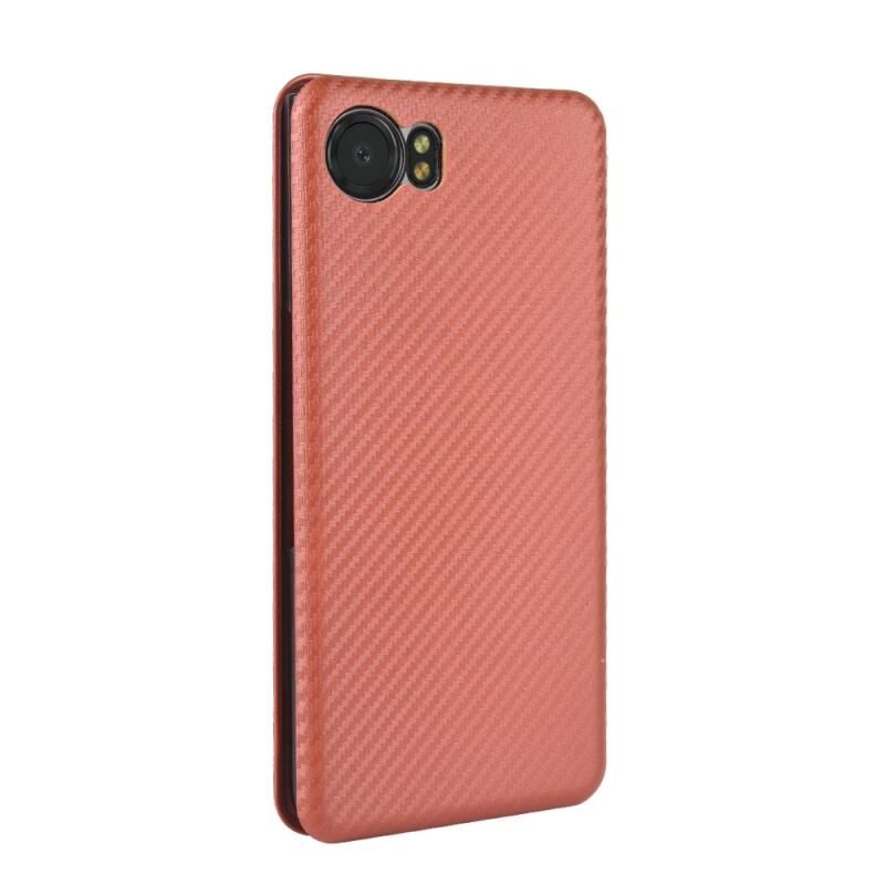 Για BlackBerry Keyone Carbon Fiber υφή οριζόντια Flip TPU + PC + PU δέρμα υπόθεση με υποδοχή κάρτας (Καφέ)