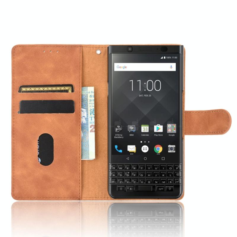 For BlackBerry Keyone Solid Color Skin Feel Magnetic Buckle Horizontal Flip Calf Texture PU Leather Case with Holder & Card Slots & Wallet(Brown)