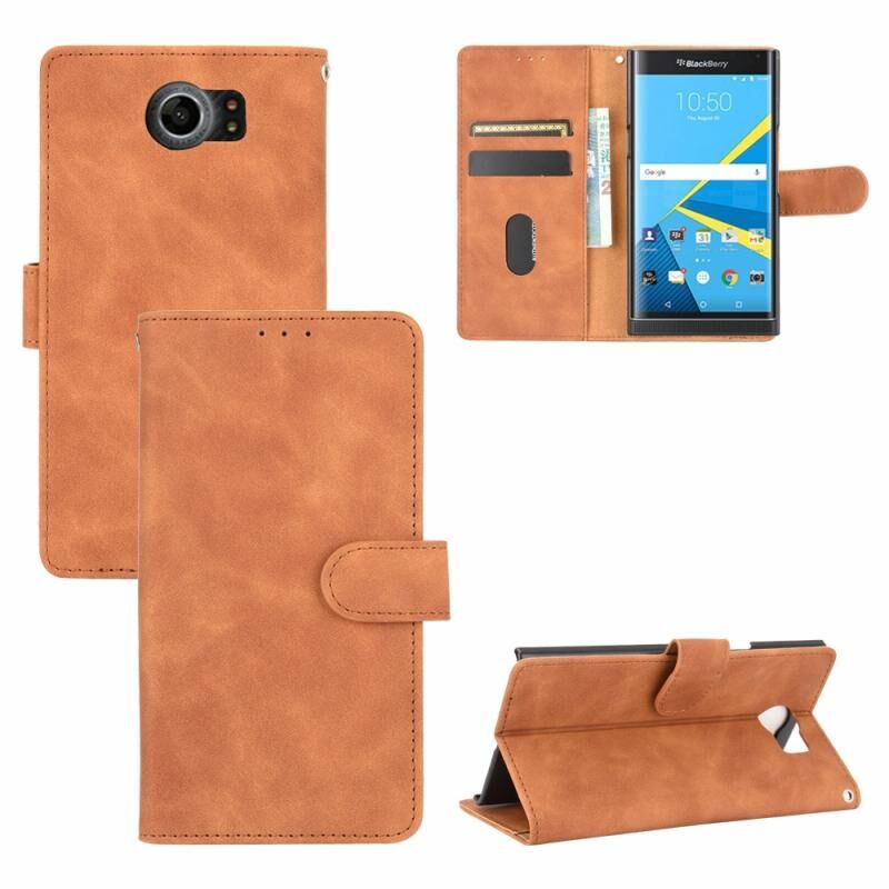 For BlackBerry Priv Solid Color Skin Feel Magnetic Buckle Horizontal Flip Calf Texture PU Leather Case with Holder & Card Slots & Wallet(Brown)