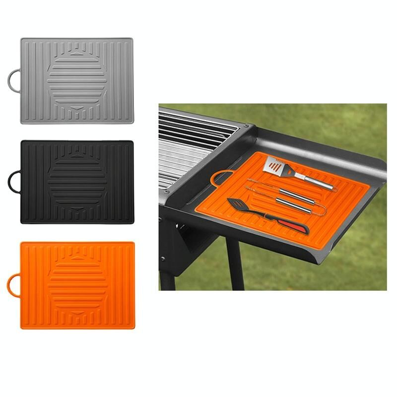 2. This grill pan tool mat is made of food-grade silicone material, which is durable and reusable.