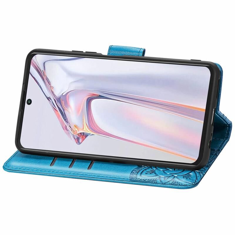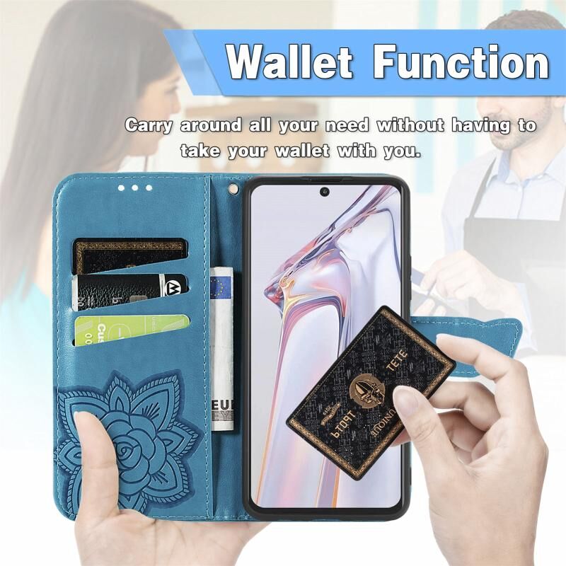 Θήκη Blueview A100 Butterfly Love Flower ανάγλυφη οριζόντια δερμάτινη με βάση & υποδοχές καρτών & πορτοφόλι & λουρί (Μαύρο)
