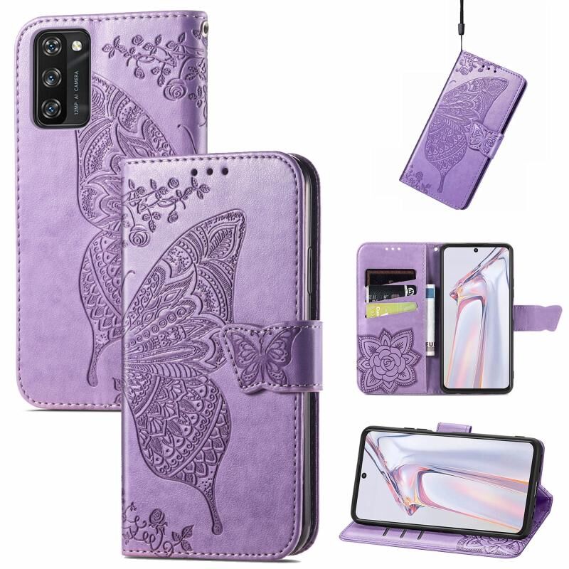 Θήκη Light Purpleview A100 Butterfly Love Flower ανάγλυφη οριζόντια δερμάτινη με βάση & υποδοχές καρτών & πορτοφόλι & λουρί (Μαύρο)
