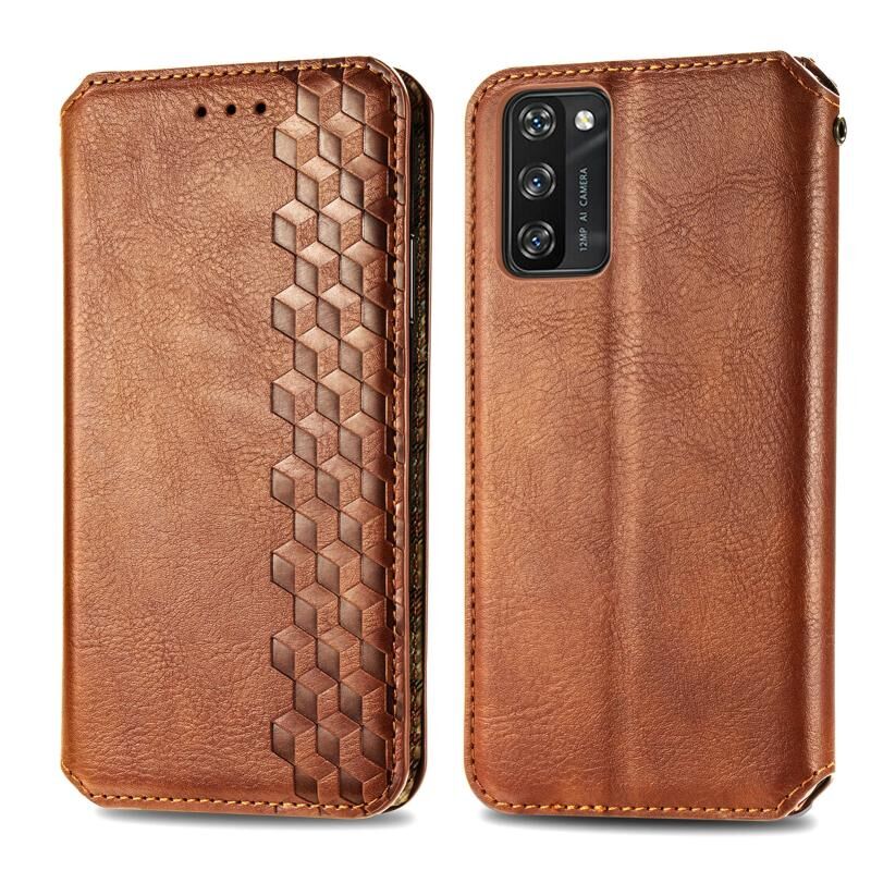 For Blackview A100 Cubic Grid Pressed Horizontal Flip Magnetic PU Leather Case with Holder & Card Slots & Wallet(Brown)