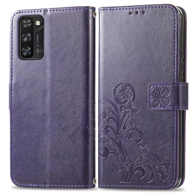 Για Blackview A100 Τέσσερα φύλλα κούμπωμα ανάγλυφο αγκράφα κινητό τηλέφωνο προστασία δερμάτινη θήκη με κορδόνι & υποδοχή για κάρτες & πορτοφόλι & βραχίονα λειτουργία (μοβ)
