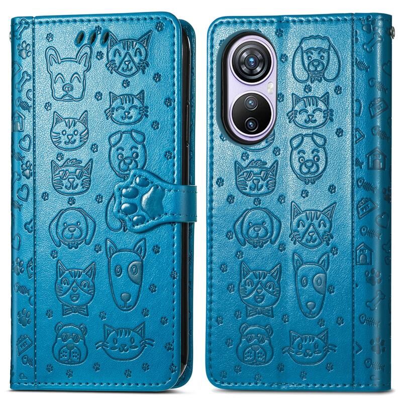 Θήκη τηλεφώνου από δέρμα με ανάγλυφο σχέδιο γάτας και σκύλου για Blackview A200 Pro (Χρυσό Ρόδι)