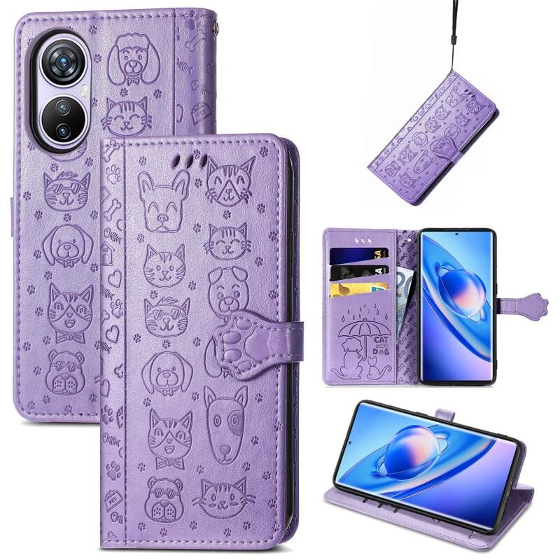 Θήκη τηλεφώνου από δέρμα με ανάγλυφο σχέδιο γάτας και σκύλου για Blackview A200 Pro (Χρυσό Ρόδι)