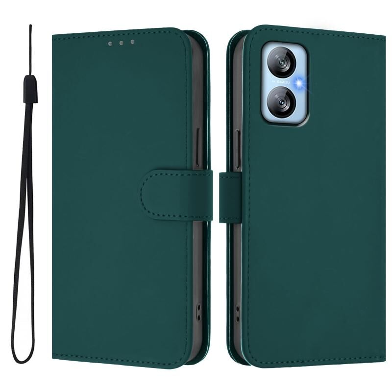 Για το Blackview A52 / A52 Pro Skin Feel Solid Color δερμάτινη θήκη τηλεφώνου με κορδόνι (σκούρο πράσινο)