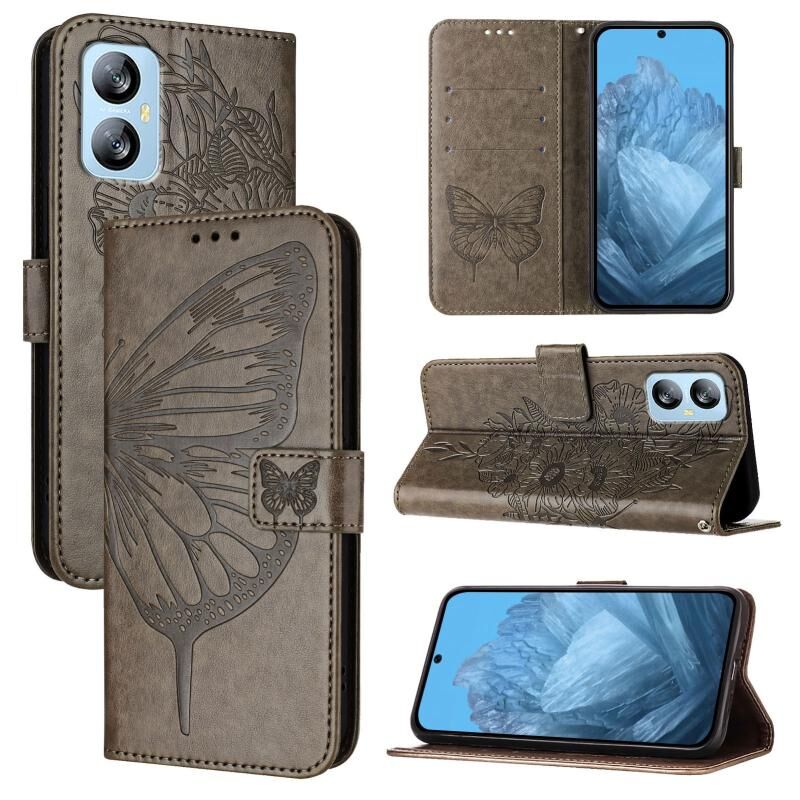 Για Blackview A52 ανάγλυφη πεταλούδα δερμάτινη θήκη τηλεφώνου (γκρι)
