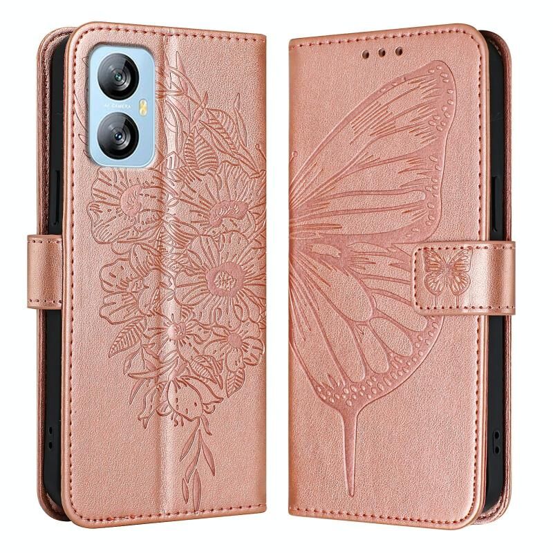 Για Blackview A52 ανάγλυφη πεταλούδα δερμάτινη θήκη τηλεφώνου (Rose Gold)