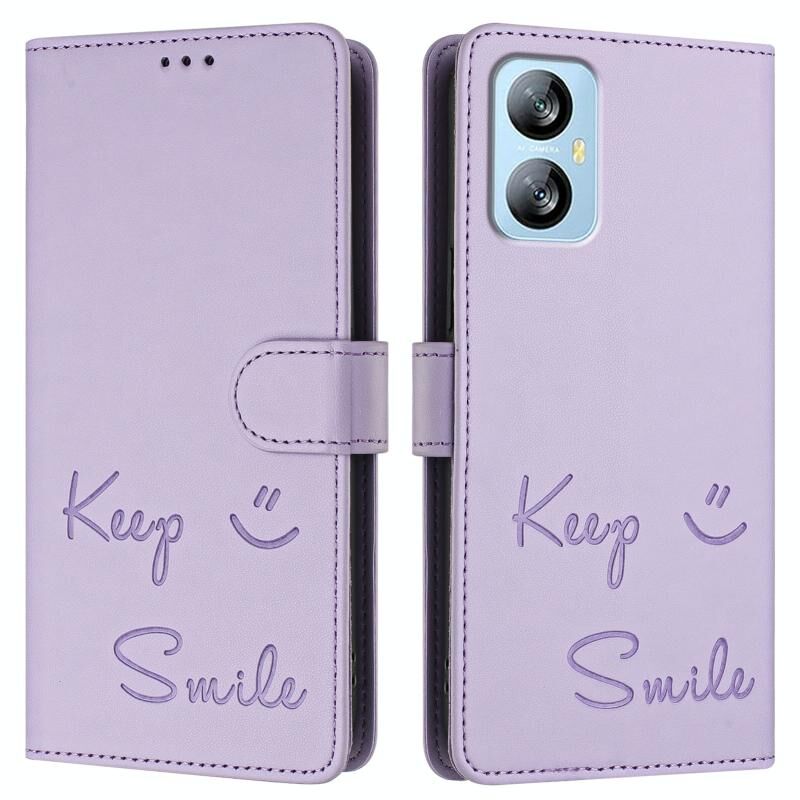 Για Blackview A52 Χαμόγελο ανάγλυφο RFID δερμάτινη θήκη τηλεφώνου (Light Purple)
