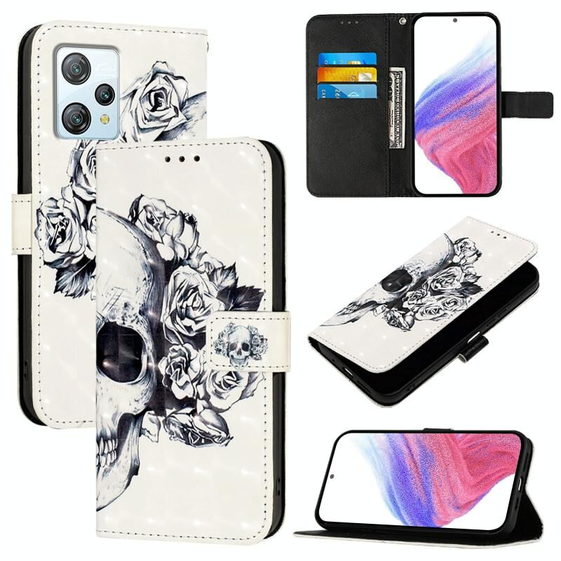 Θήκη τηλεφώνου από δέρμα με οριζόντιο άνοιγμα και τρισδιάστατη ζωγραφική για Blackview A53 (Κρανίο)