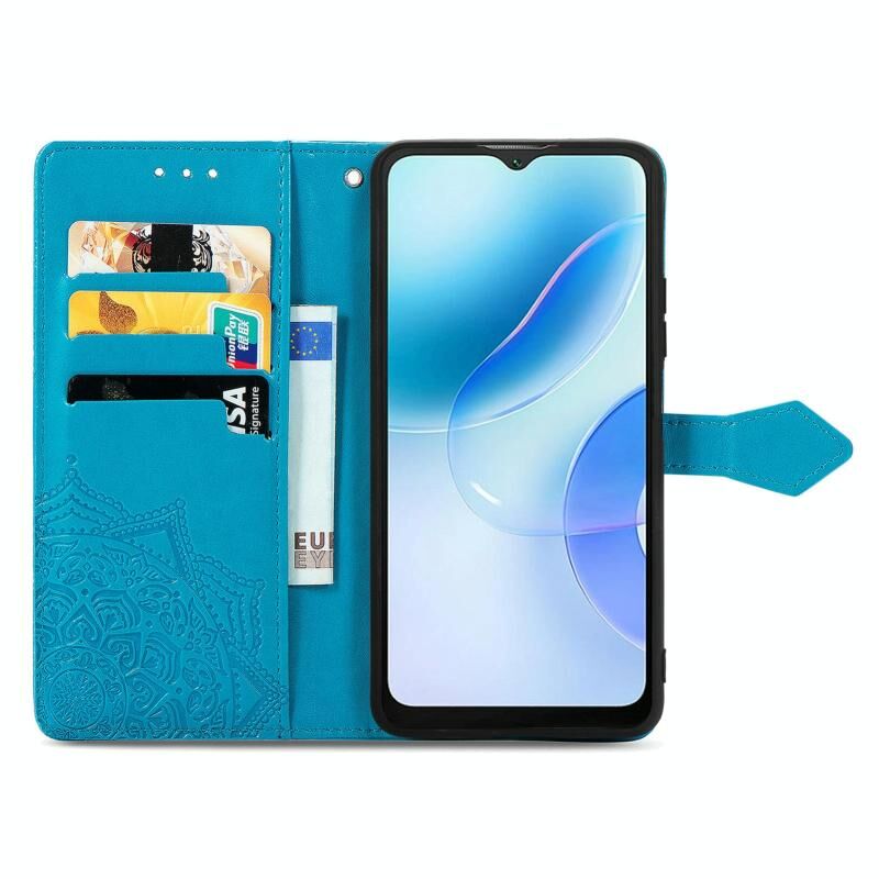Για Blackview A53 Mandala λουλούδι ανάγλυφο δερμάτινη θήκη τηλεφώνου (μπλε)