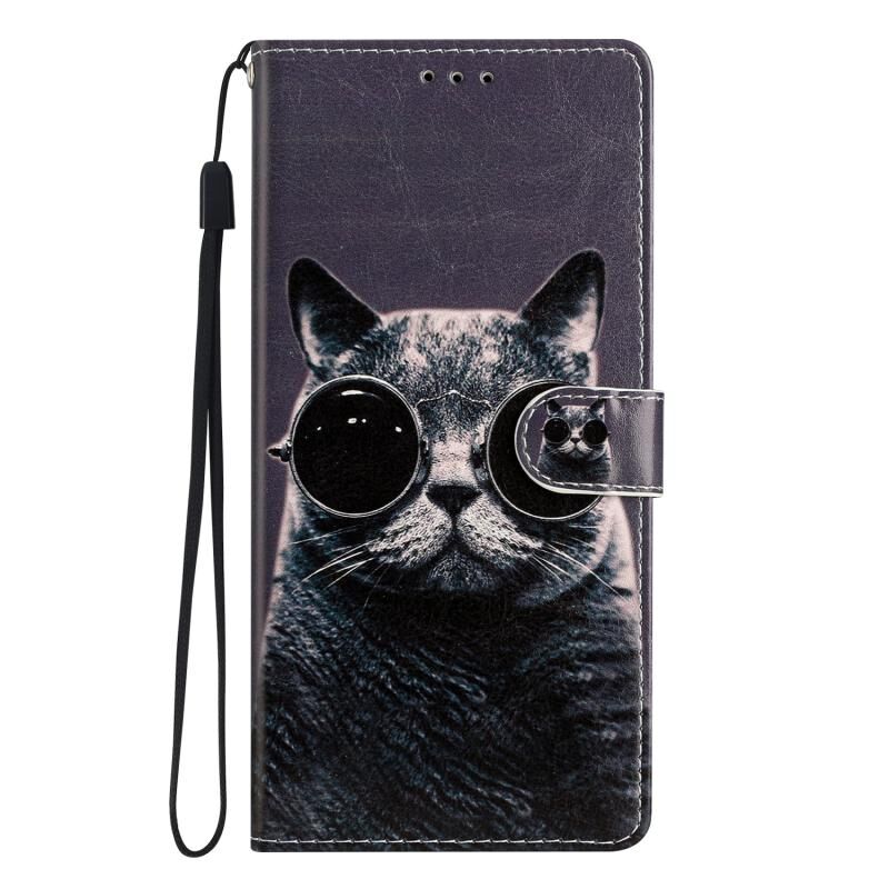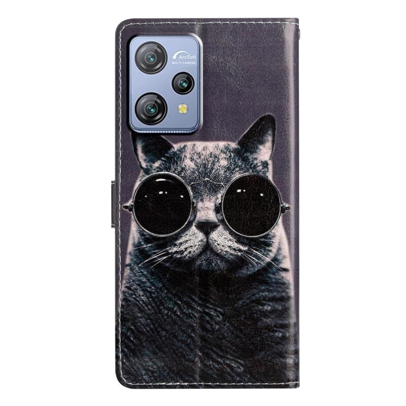 Θήκη τηλεφώνου από δέρμα με έγχρωμο σχέδιο για Blackview A53 Pro (Γάτα με γυαλιά ηλίου)