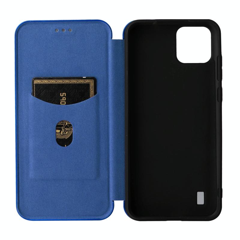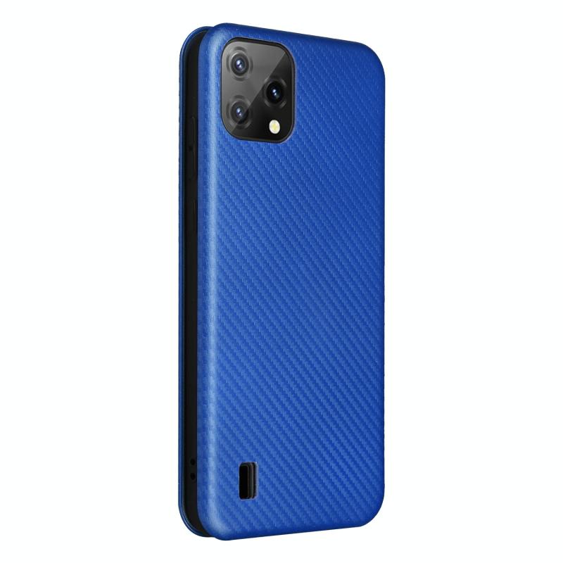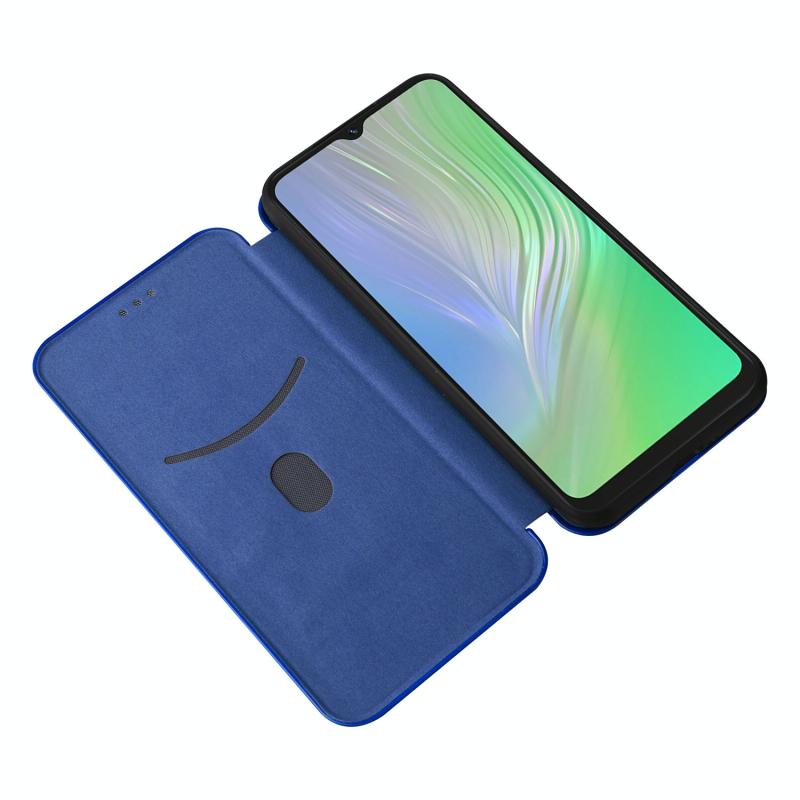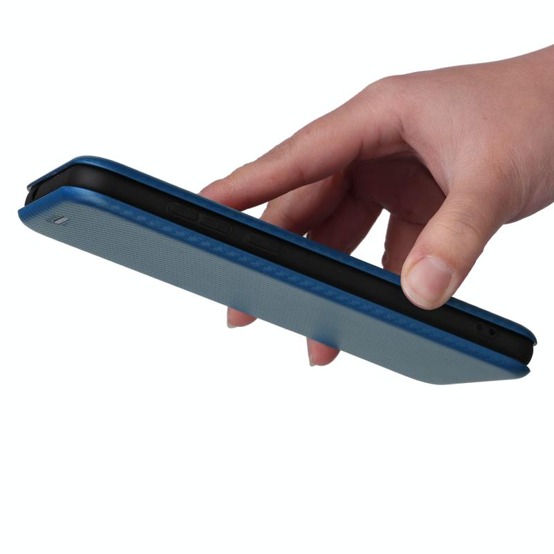 Θήκη τηλεφώνου οριζόντιας αναδίπλωσης από δερματίνη PU με υφή ανθρακονήματος για Blackview A55 (Μπλε)