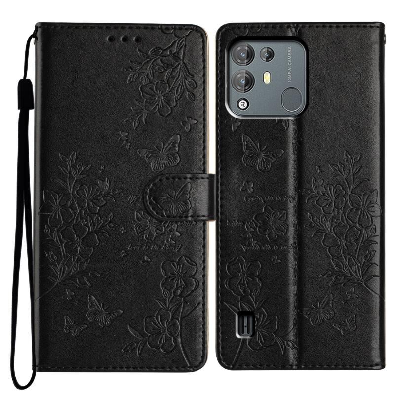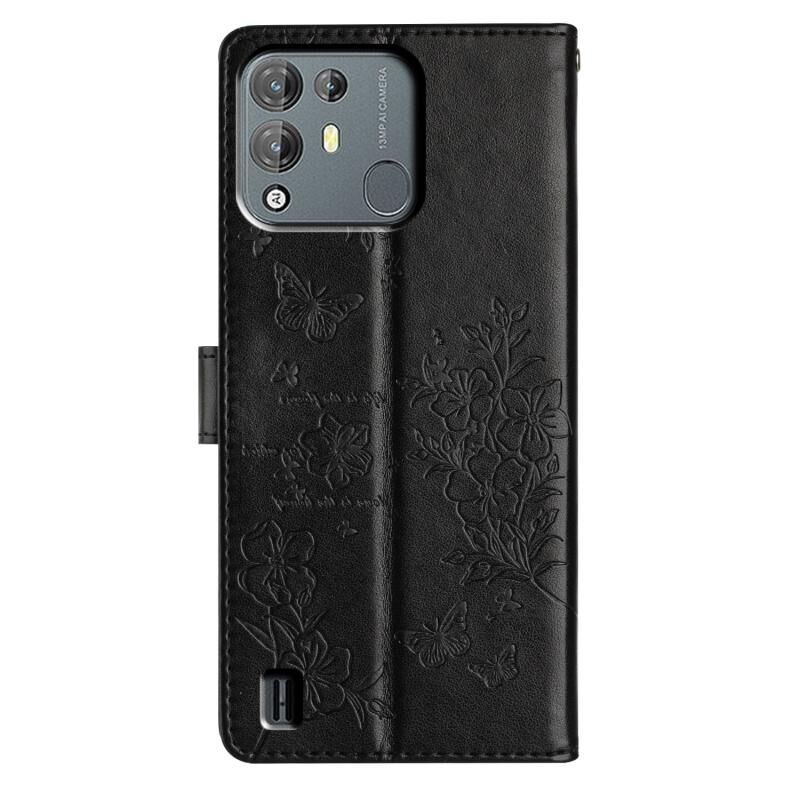Θήκη τηλεφώνου δερμάτινη για Blackview A55 Pro με σχέδια πεταλούδες και λουλούδια (Μαύρο)