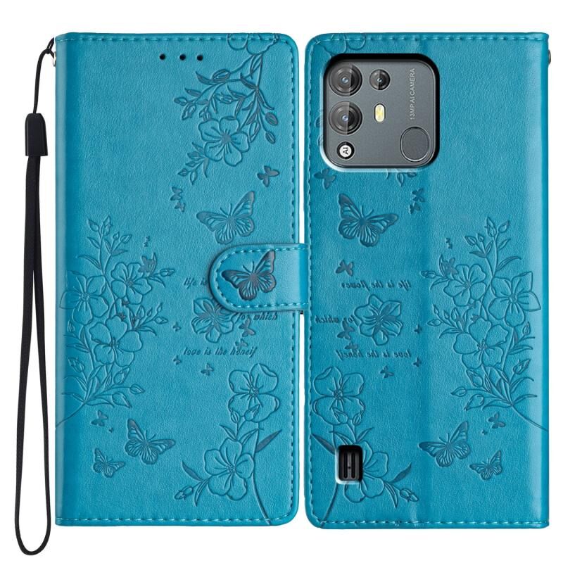 Θήκη τηλεφώνου δερμάτινη για Blackview A55 Pro με σχέδια πεταλούδες και λουλούδια (Μπλε)
