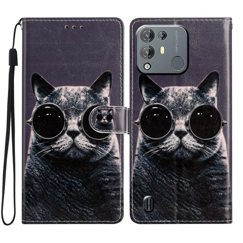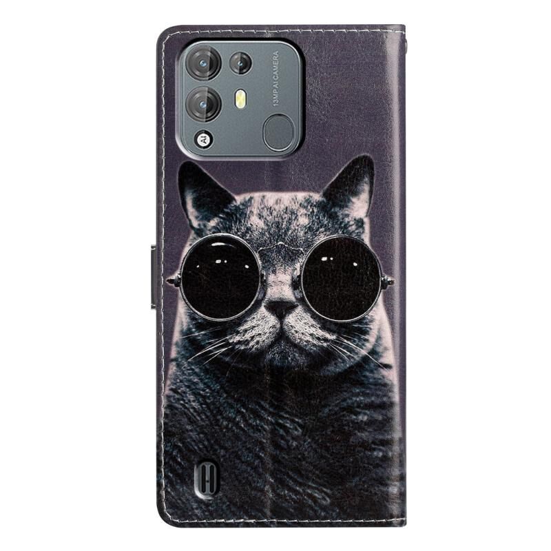 Θήκη τηλεφώνου από δέρμα με έγχρωμο σχέδιο για Blackview A55 Pro (Γάτα με γυαλιά ηλίου)