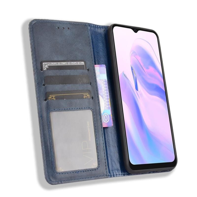 Για Blackview A70 (2021) Μαγνητική πόρπη Retro Crazy Horse Υφή Οριζόντια Flip δερμάτινη θήκη με υποδοχή & υποδοχές καρτών & πλαίσιο φωτογραφιών (μπλε)