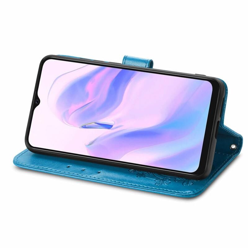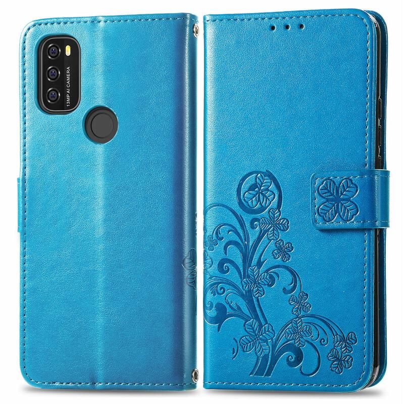 Για Blackview A70 Τέσσερα φύλλα κούμπωμα ανάγλυφη αγκράφα Κινητό τηλέφωνο Προστασία Δερμάτινη θήκη με κορδόνι & υποδοχή για κάρτες & πορτοφόλι & λειτουργία βραχίονα (μπλε)