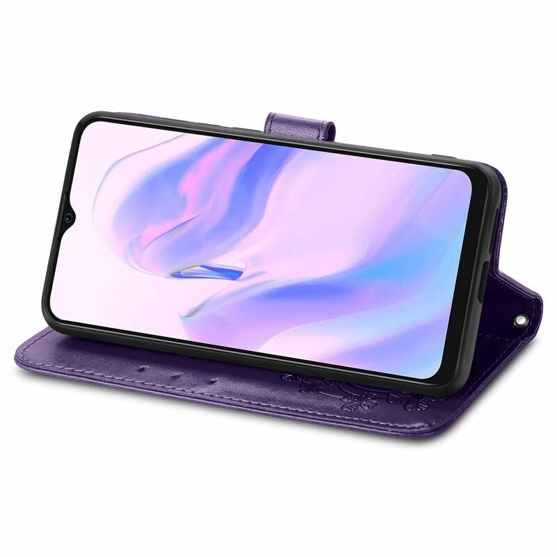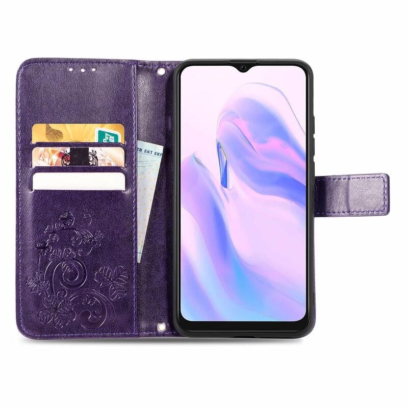 Για Blackview A70 Τέσσερα φύλλα κούμπωμα ανάγλυφο αγκράφα κινητό τηλέφωνο προστασία δερμάτινη θήκη με κορδόνι & υποδοχή για κάρτες & πορτοφόλι & βραχίονα λειτουργία (μοβ)