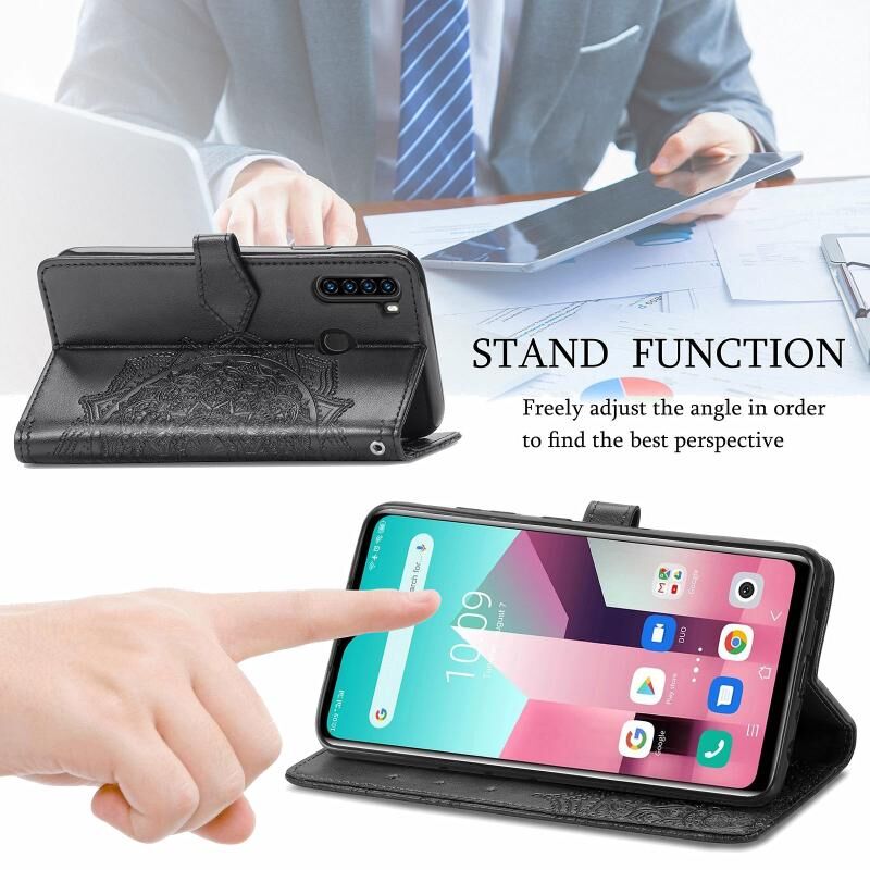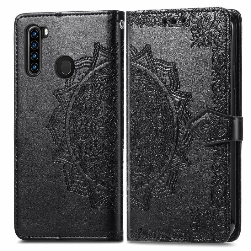 Για Blackview A80 Pro Mandala λουλούδι ανάγλυφο οριζόντια Flip δερμάτινη θήκη με θήκη & τρεις υποδοχές για κάρτες & πορτοφόλι & κορδόνι (Μαύρο)