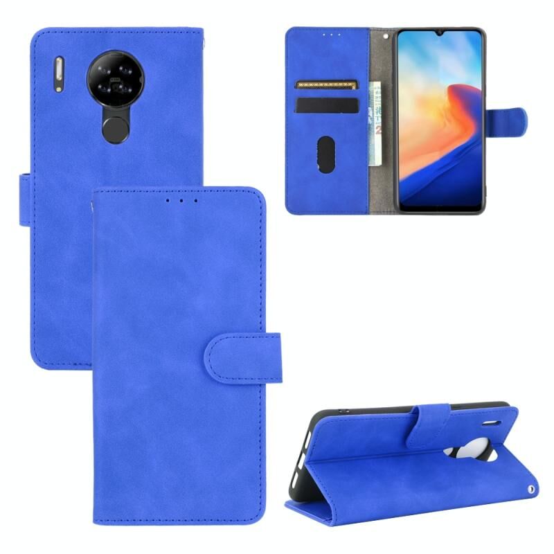 Θήκη για Blackview A80, μονόχρωμη με αίσθηση δέρματος, μαγνητικό κούμπωμα, οριζόντια αναδιπλούμενη, υφή μοσχαρίσιου δέρματος, από δερματίνη PU με βάση για στήριξη & θήκες για κάρτες & πορτοφόλι (Μπλε)