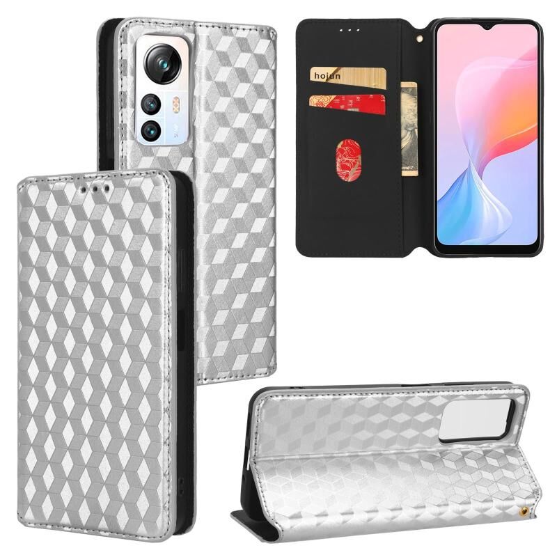 Θήκη τηλεφώνου από δέρμα με ανάγλυφη υφή κυβικού πλέγματος για Silverview A85 (Μαύρο)