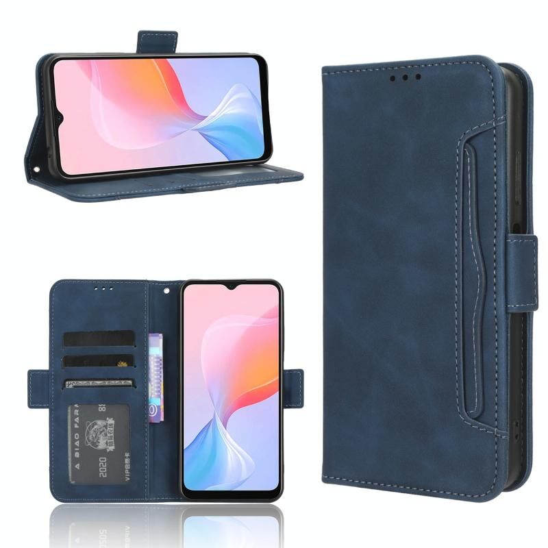 Για Blackview A85 δέρμα αίσθηση μοσχάρι υφή κάρτα υποδοχές δερμάτινη θήκη τηλεφώνου (μπλε)