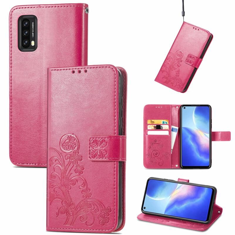 Για Blackview A90 τετράφυλλο κούμπωμα ανάγλυφο αγκράφα κινητό τηλέφωνο προστασία δερμάτινη θήκη με κορδόνι & υποδοχή για κάρτες & πορτοφόλι & βραχίονα λειτουργία (Magenta)