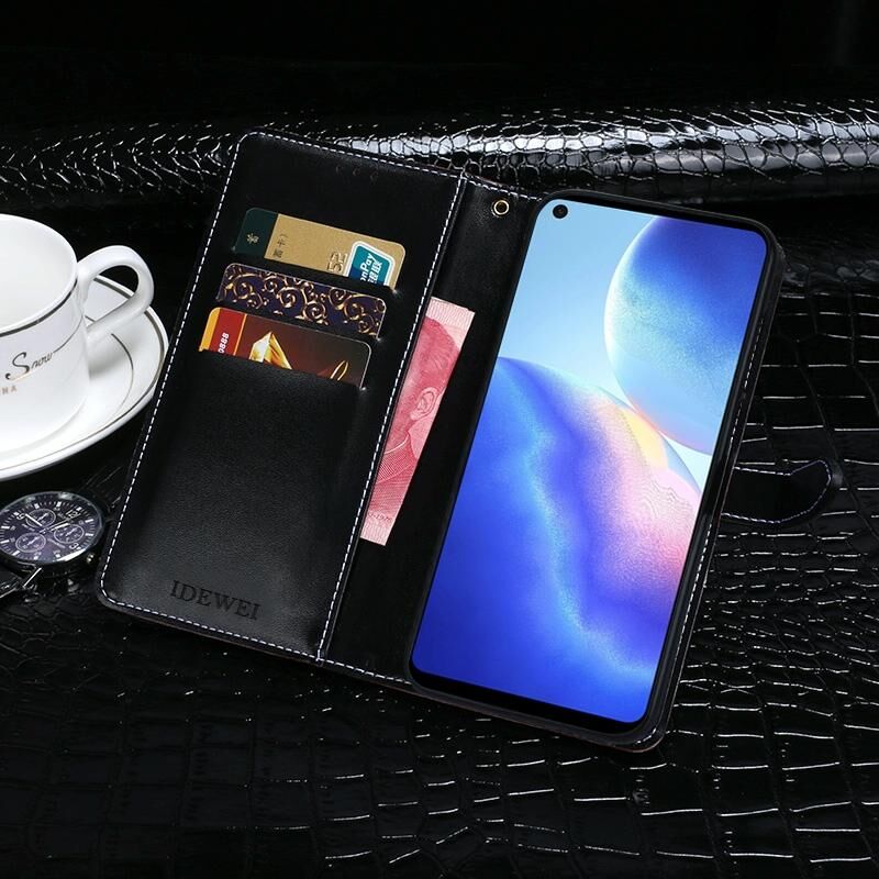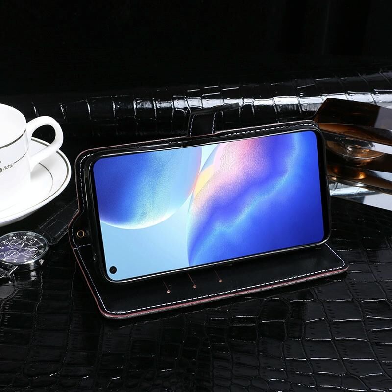 Θήκη δέρματος οριζόντιας αναδίπλωσης με υφή κροκόδειλου για Blackview A90 idewei με βάση στήριξης & υποδοχές καρτών & πορτοφόλι (Σκούρο Μπλε) (idewei)