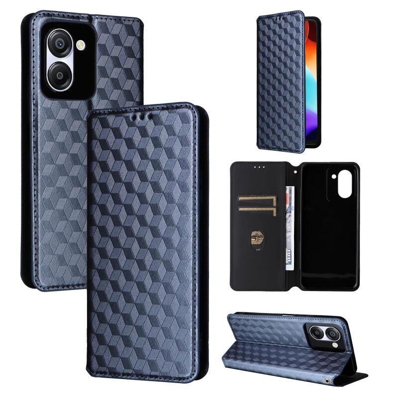 Θήκη τηλεφώνου από δέρμα με υφή κυβικού πλέγματος για Blueview Color 8 (Μπλε)