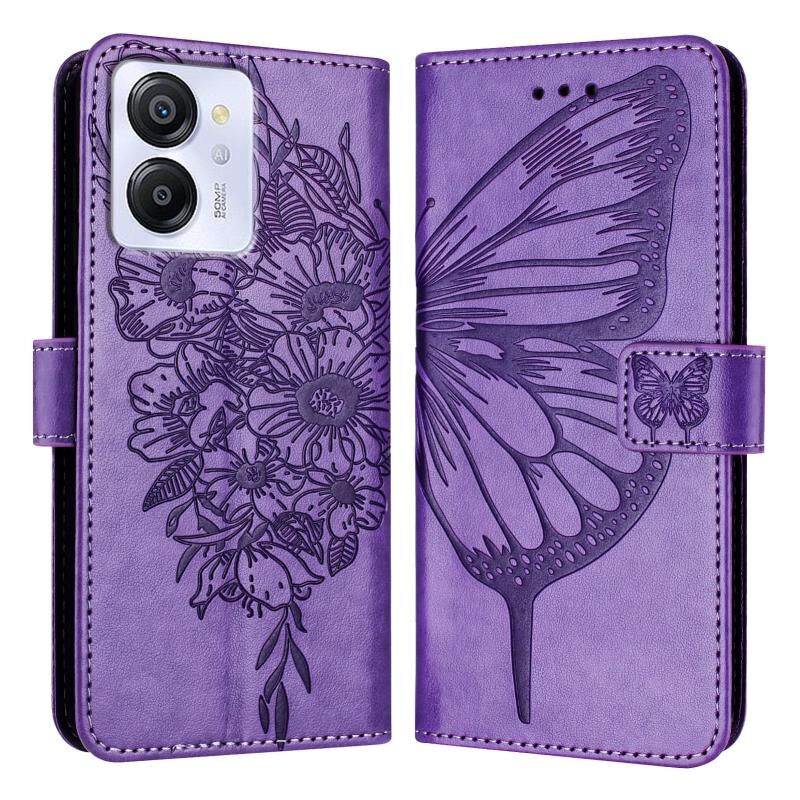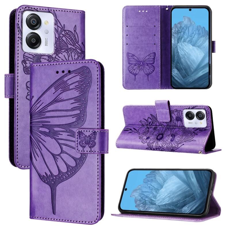 Για Blackview Color 8 ανάγλυφη πεταλούδα δερμάτινη θήκη τηλεφώνου (μωβ)