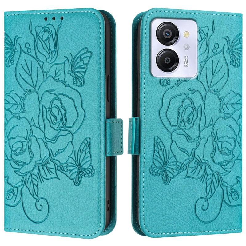 For Blackview Color 8 / Oscal Modern 8 Embossed Rose RFID Anti-theft Leather Phone Case(Light Blue)