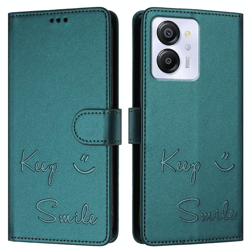 Για Blackview Χρώμα 8 Χαμόγελο ανάγλυφο RFID δερμάτινη θήκη τηλεφώνου (Πράσινο παγώνι)