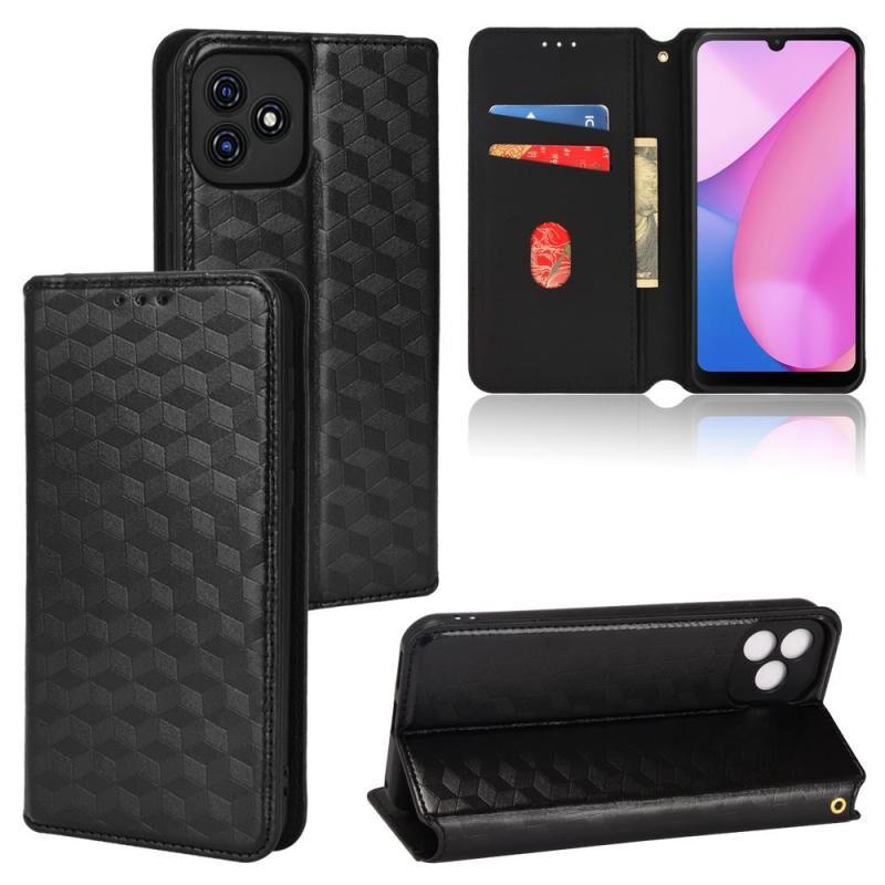 Θήκη τηλεφώνου από δέρμα με υφή κυβικού πλέγματος, τύπου flip, για Blackview Oscal C20 / C20 Pro (Μαύρο)