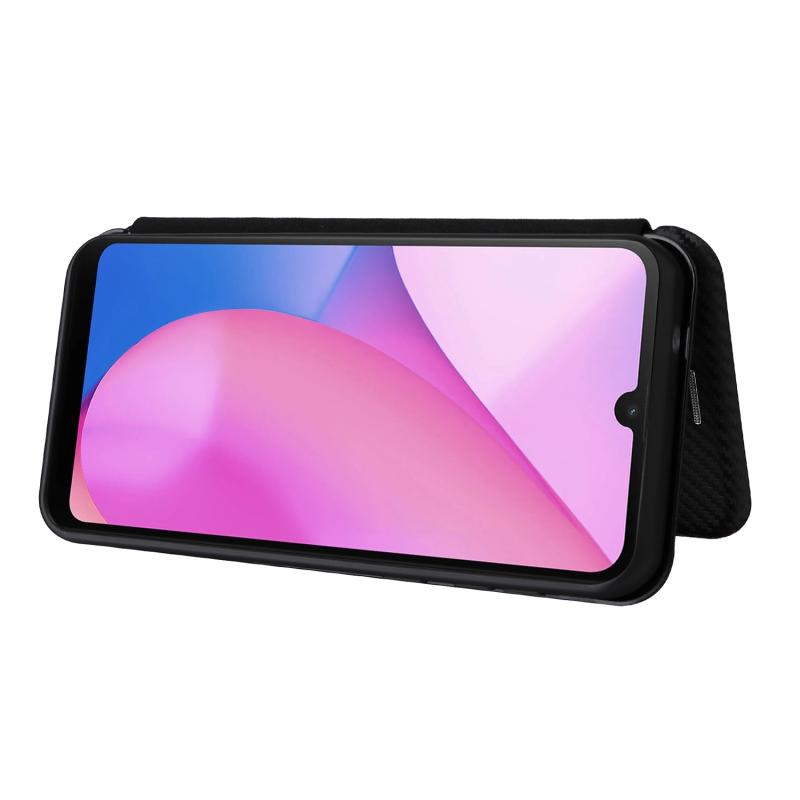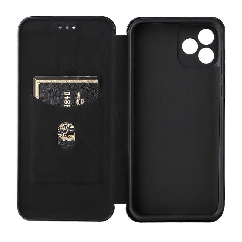 Θήκη τηλεφώνου από δέρμα με οριζόντιο άνοιγμα για Blackview Oscal C20 με υφή ανθρακονήματος και θήκη για κάρτες (Καφέ)