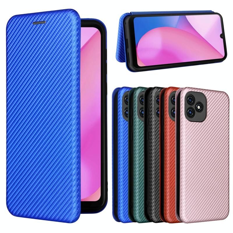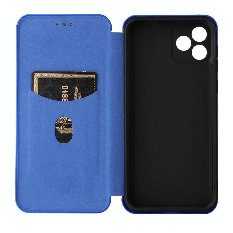 Θήκη τηλεφώνου από δέρμα με οριζόντιο άνοιγμα για Blackview Oscal C20 με υφή ανθρακονήματος και θήκη για κάρτες (Καφέ)
