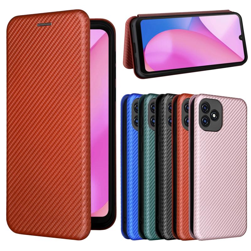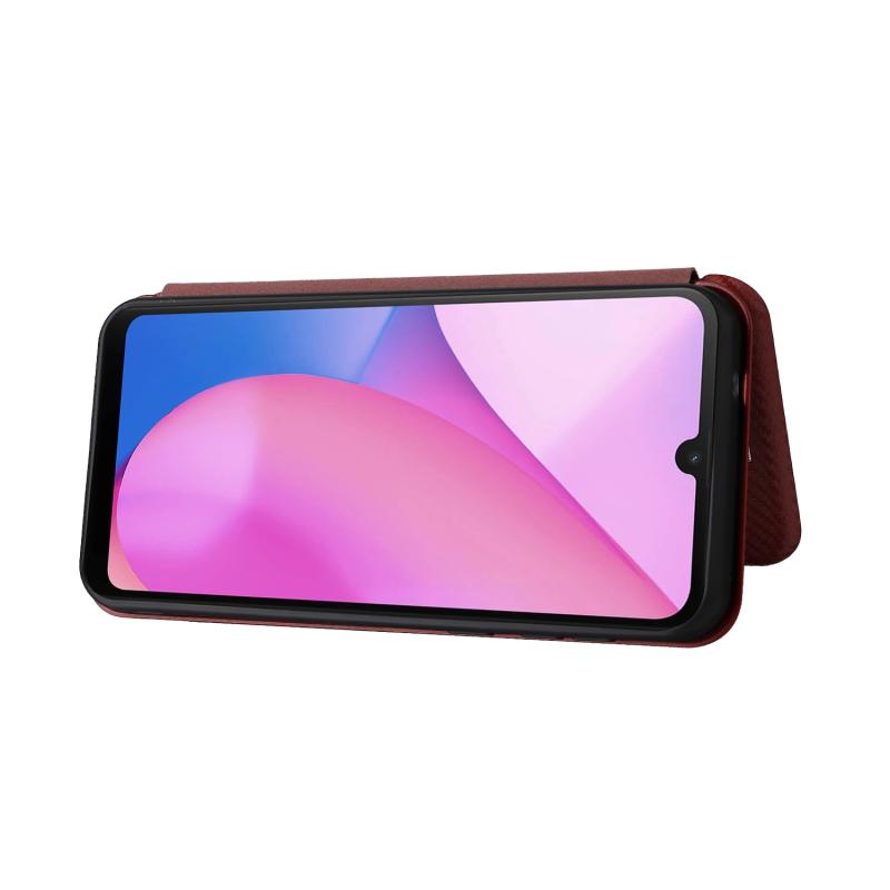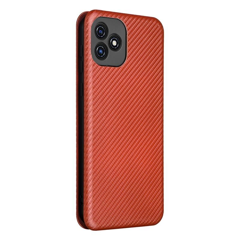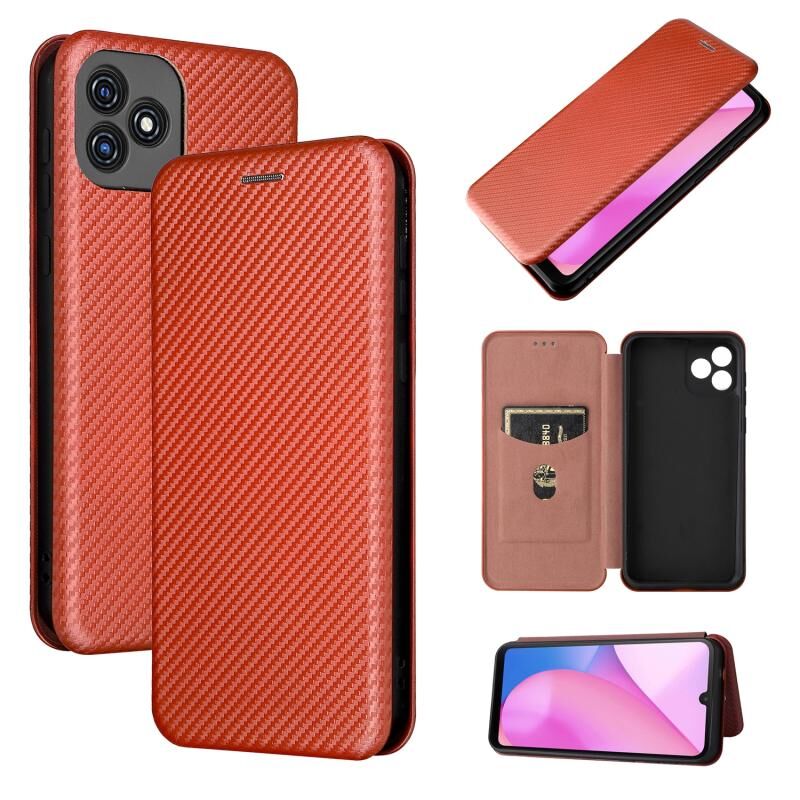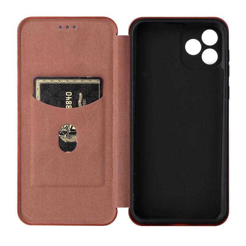 Θήκη τηλεφώνου από δέρμα με οριζόντιο άνοιγμα για Blackview Oscal C20 με υφή ανθρακονήματος και θήκη για κάρτες (Καφέ)