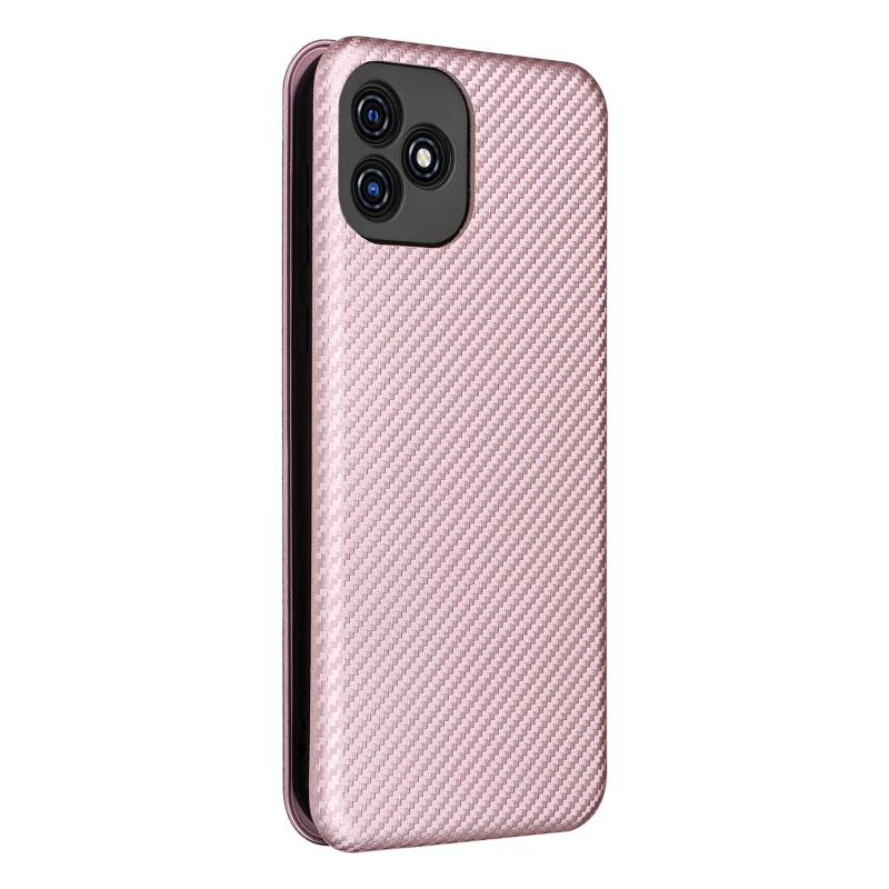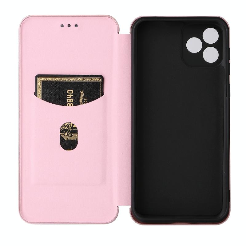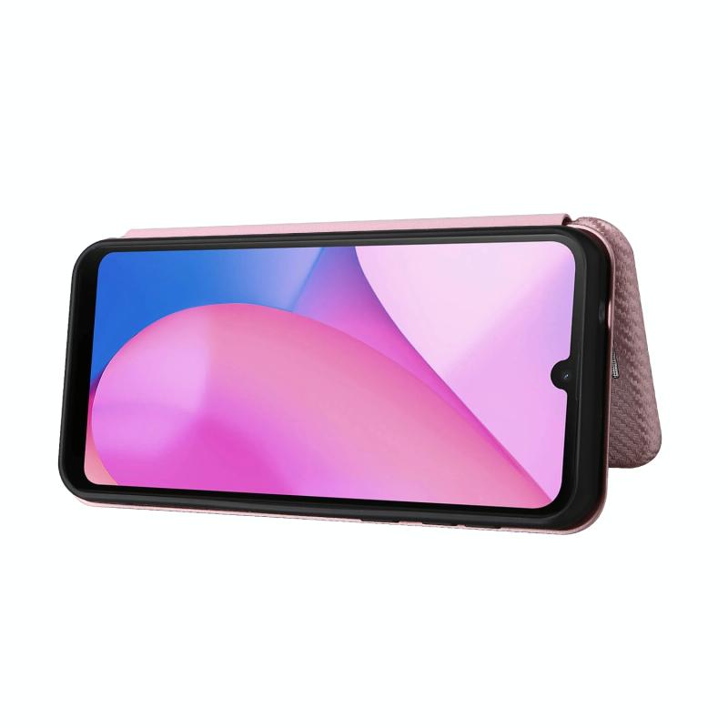 Θήκη τηλεφώνου από δέρμα με οριζόντιο άνοιγμα για Blackview Oscal C20 με υφή ανθρακονήματος και θήκη για κάρτες (Καφέ)