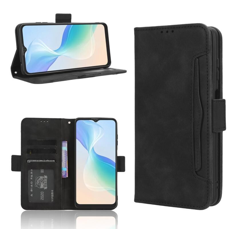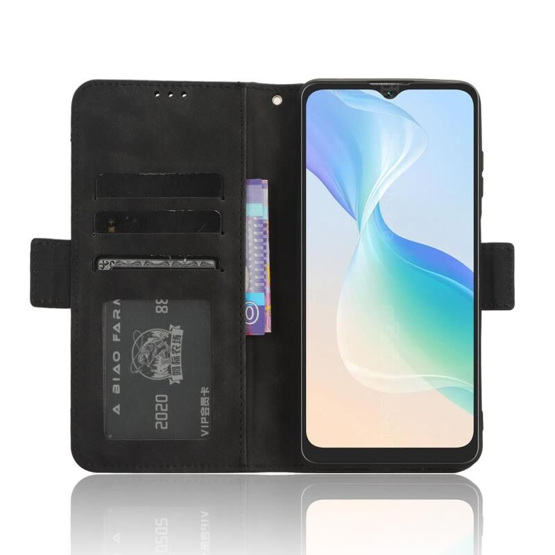 Για Blackview Oscal C30 / C30 Pro δέρμα αίσθηση μοσχάρι υφή κάρτα υποδοχές δερμάτινη θήκη τηλεφώνου (μαύρο)