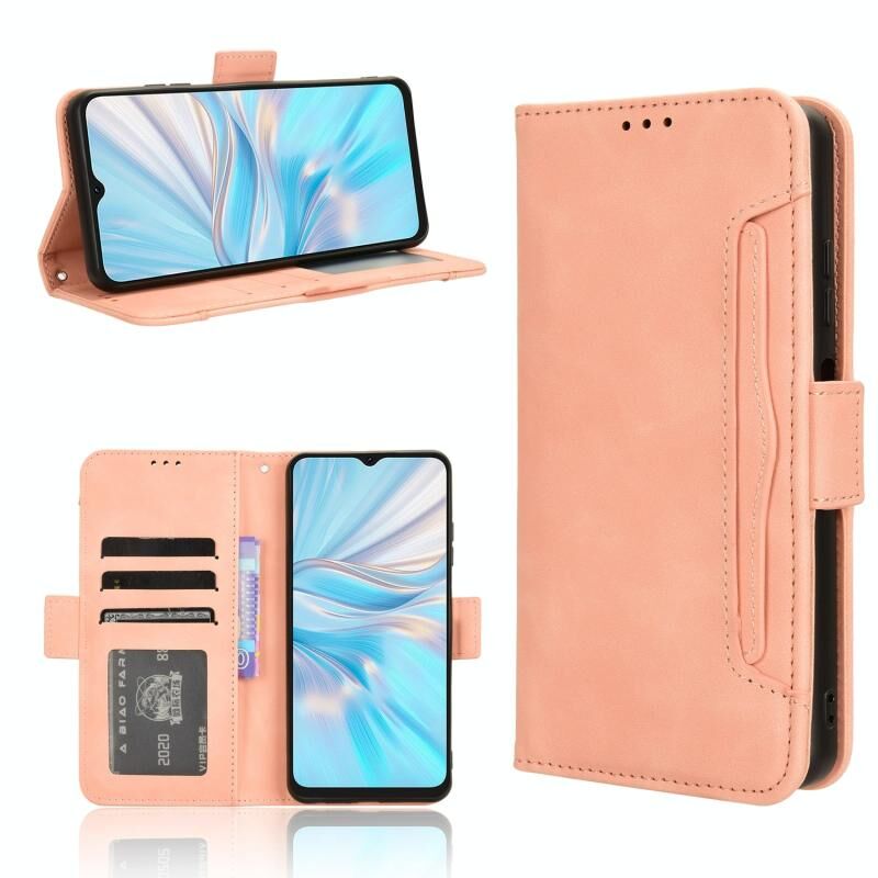 Για Blackview Oscal C70 δέρμα αίσθηση μοσχάρι υφή κάρτα υποδοχές δερμάτινη θήκη τηλεφώνου (ροζ)