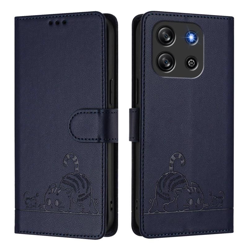 For Blackview Oscal Flat 1C Cat Rat Embossed Pattern RFID Leather Phone Case with Lanyard(Blue)