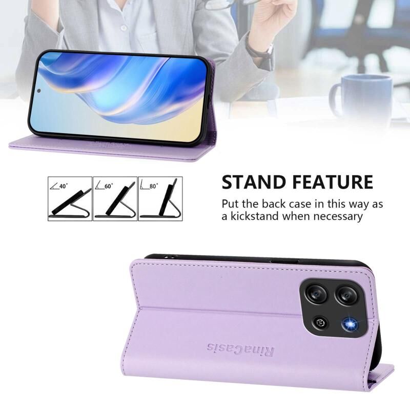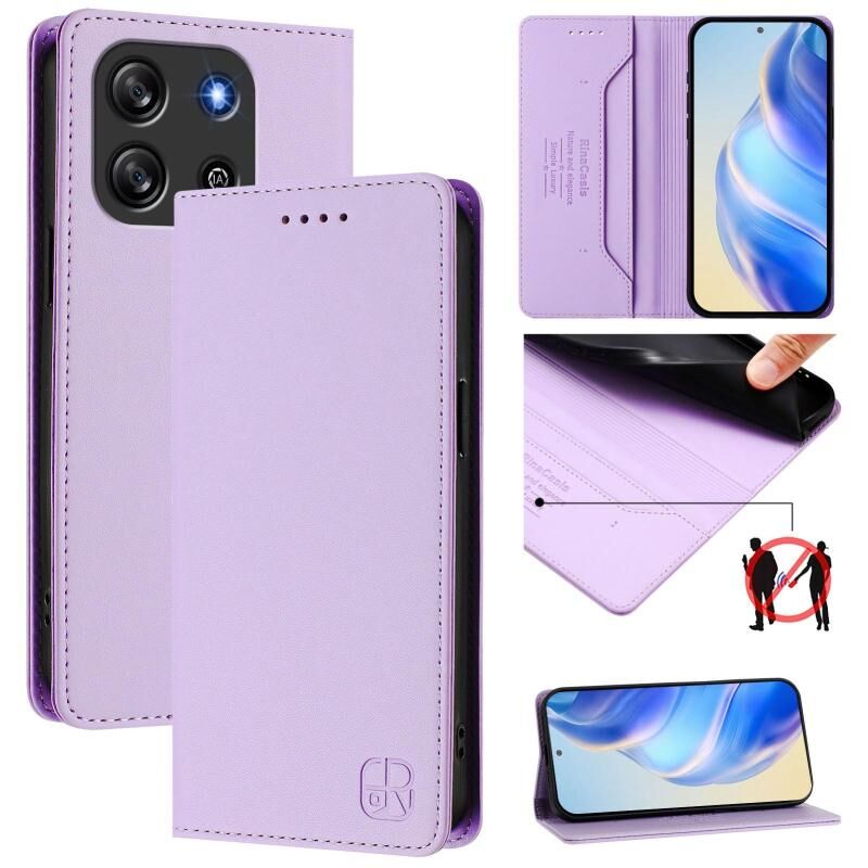 For Blackview Oscal Flat 1C RC01 Dual-Folded Magnetic Suction RFID Leather Phone Case(Light Purple)