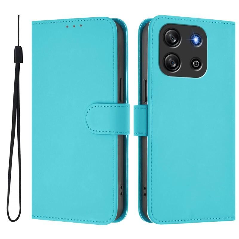 For Blackview Oscal Flat 1C Skin Feel Solid Color Leather Phone Case with Lanyard(Lake Blue)