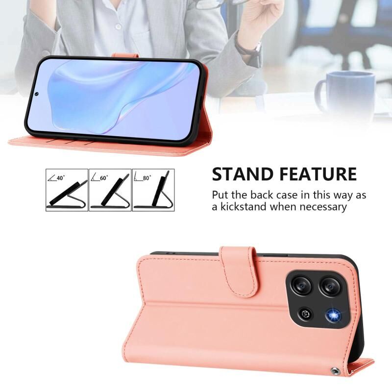 For Blackview Oscal Flat 1C Skin Feel Solid Color Leather Phone Case with Lanyard(Pink)